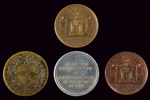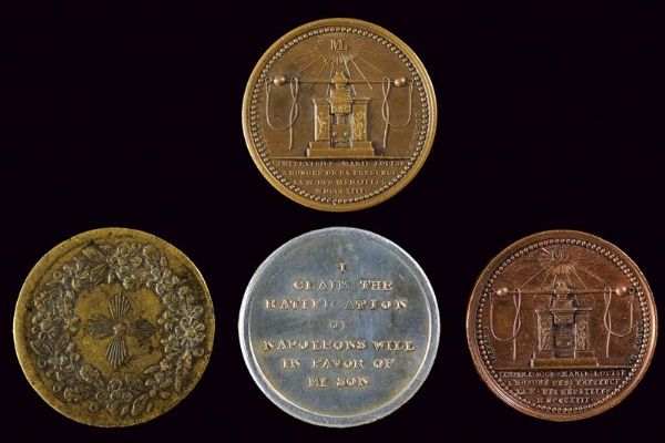 Prima metà del XIX Secolo Due in bronzo, una in argento ('I CLAIM THE RATIFICATiON OF NAPOLEONS WILL IN FAVOR OF MY SON') e una medaglia piatta in ottone.