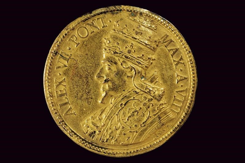 Medaglia Alessandro VII (1655 - 1667) in bronzo dorato
