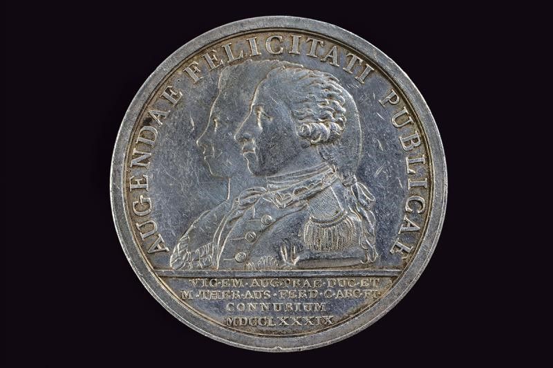 Regno di Sardegna, diametro 4.6 cm. 1789 In argento. Al dritto busto verso destra con mantello, al bordo 'VICTORIVS AMEDEVS III REX SARDINIAE'; opus 'C. LAVY'. Al rovescio busti accollati dei due novelli sposi con sguardo verso sinistra, alla sommità 'AUGENDAE FELICITATI PUBLICAE', in esergo 'VI