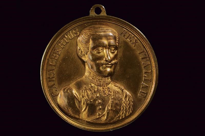 Sul recto Busto a destra con iscrizione 'PIUS IX / PONTIF. MAX.', sul retro busto in uniforme a destra con iscrizione 'CAR • ALBERTUS / REX ITALIAE'. Su anello.
