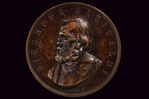 Regno d'Italia, diametro 6 cm. 1862 In bronzo. Al dritto busto verso sinistra e, al bordo, 'GIUSEPPE GARIBALDI'; [..]