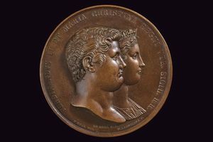 Parigi, diametro 5 cm. 1830 Al dritto busti affiancati dei reali di Napoli con sguardo verso sinistra, al bordo [..]