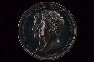 Modena, diametro 8.1 cm. 1819 Al recto teste accollate a destra di Francesco IV e della moglie Maria Beatrice [..]