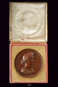 Roma, diametro 6 cm. 1840 In bronzo, di forma circolare; al dritto busto laureato con iscrizione 'VICTORIA COLVMNA', [..]