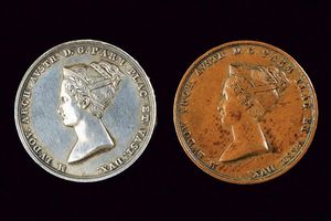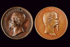 Italia, diametro 5.5 cm. Terzo quarto del XIX Secolo Entrambe in bronzo, una per ricordare la partecipazione all'esposizione [..]