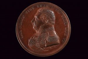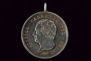 Regno di Sardegna, diametro 5.3 cm. 1820-30 Al dritto busto verso sinistra con uniforme militare, cinque decorazioni [..]