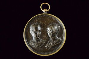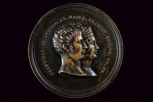 Modena, diametro 9.33 cm. 1842 Al recto busti affiancati e di tre quarti di Francesco V e Aldegonda di Baviera. [..]
