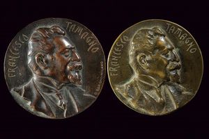 Regno d'Italia, diametro 4 - 4 cm. 1904 Lotto di medaglie in bronzo dorato, donate al tenore Francesco Tamagno [..]