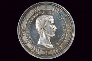 Regno di Sardegna, diametro 5.5 cm. 1846 In argento. Al dritto bella rappresentazione del profilo di Carlo Alberto [..]