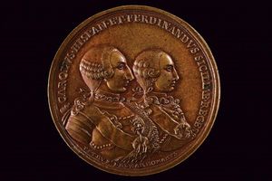 Napoli, diametro 4.09 cm. 1772 Sul recto busti accollati a destra con iscrizione 'FERDINANDVS REX MARIA CAROLINA [..]