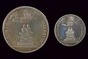 Napoli, diametro 3.48 cm. 1738 Sul recto iscrizione 'CAROLI / UTRIUSQUE / SICILIÆ REGIS ET / MARIÆ AMALIÆ / [..]