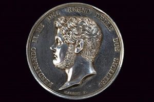 Napoli, diametro 3.9 cm. 1840 circa Sul recto busto in altorilievo a sinistra con iscrizione 'FERDINANDO II RE [..]