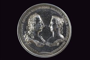 Vienna, diametro 4.2 cm. 1768 In argento. Al dritto busto della regina con sguardo rivolto verso destra, al bordo [..]