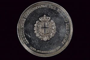 Regno delle Due Sicilie, diametro 6 cm. 1845 circa In argento, al dritto busto in rilievo di Giambattista Vico [..]