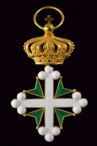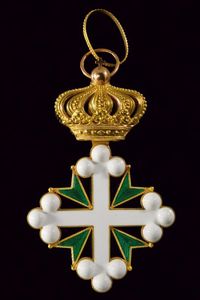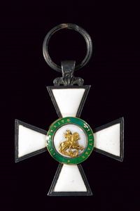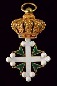 Regno d'Italia, dimensioni 3.2 x 6.6 cm. 1855 circa Croce da commendatore, in oro e smalti, con corona traforata. [..]