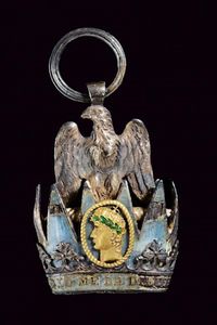 Regno Italico, altezza 2.9 cm. 1805 - 1814 Primo tipo, in argento con resti di smalti. Molto raro.