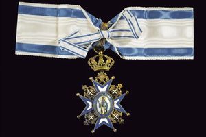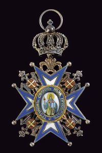 Serbia, dimensioni 5.2 x 8.4 cm. inizio del XX Sec. Croce da commendatore, in metallo smaltato. Il santo con veste [..]