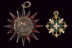Europa, 4.4 x 4.6 e 2.7 x 3.1 cm. XIX Secolo Uno a stella, con raggi in vetro rosso (mancanze e danni), recante [..]