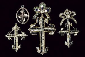 Europa, altezza 3.7 - 10.2 cm. XIX Secolo Le croci di grandezza differente, in metallo bianco, decorate con simil-pietre [..]