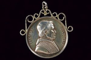 Stato Pontificio, diametro 4.3 cm. Terzo quarto del XIX Secolo Al recto busto a destra con iscrizione 'PIVS IX [..]