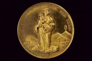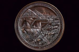 Stato Pontificio, diametro 76.5 cm. 1835 In argento dorato. Sul recto veduta dell'imbocco dei due nuovi cunicoli [..]