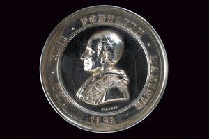 Stato Città del Vaticano, diametro 6 cm. 1893 Al recto busto a sinistra con iscrizione 'LEO XIII PONTIFEX [..]