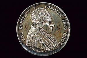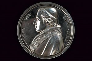 Stato Pontificio, diametro 4.2 cm. 1822 Al recto immagine del Papa in bassorilievo con iscrizione 'PIVS SEPTIMUS [..]