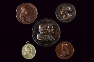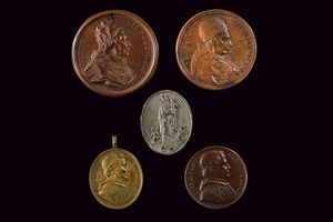 Stato Pontificio, dimensioni various cm. XIX Secolo Medaglia Benedetto XIV in bronzo, Pio IX Anno VIII in bronzo, [..]