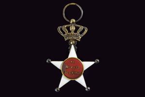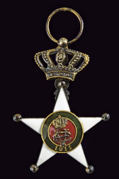 Prima metà del XX Secolo Croce da ufficiale. In metallo dorato e smaltato. Con corona.