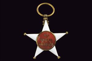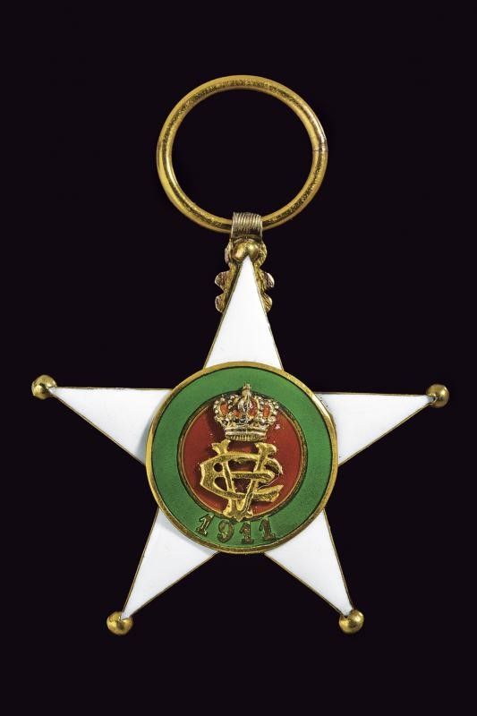 Prima metà del XX Secolo Croce da cavaliere. In metallo dorato e smaltato.