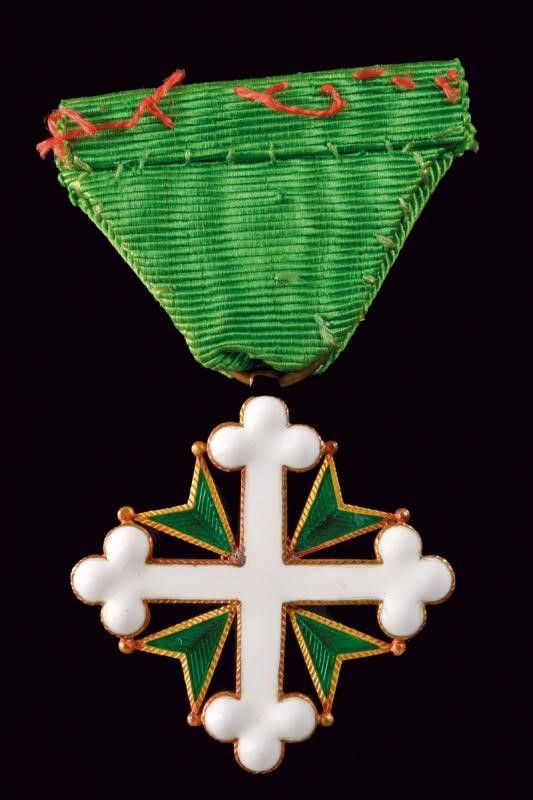 1900 circa Croce da cavaliere in oro e smalti. Con nastro originale.