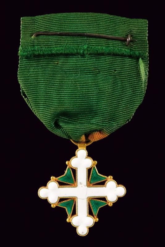 Secondo quarto del XIX Secolo Croce da cavaliere in oro e smalti; piccole mancanze e crepe. Con nastro originale.