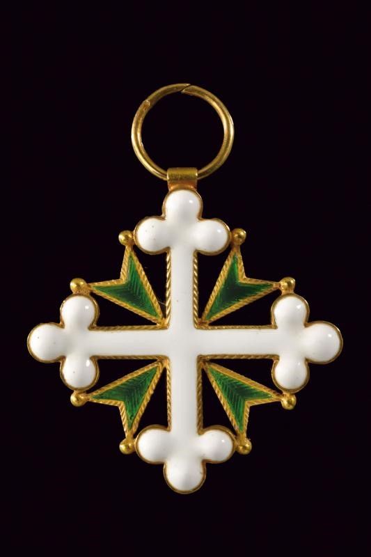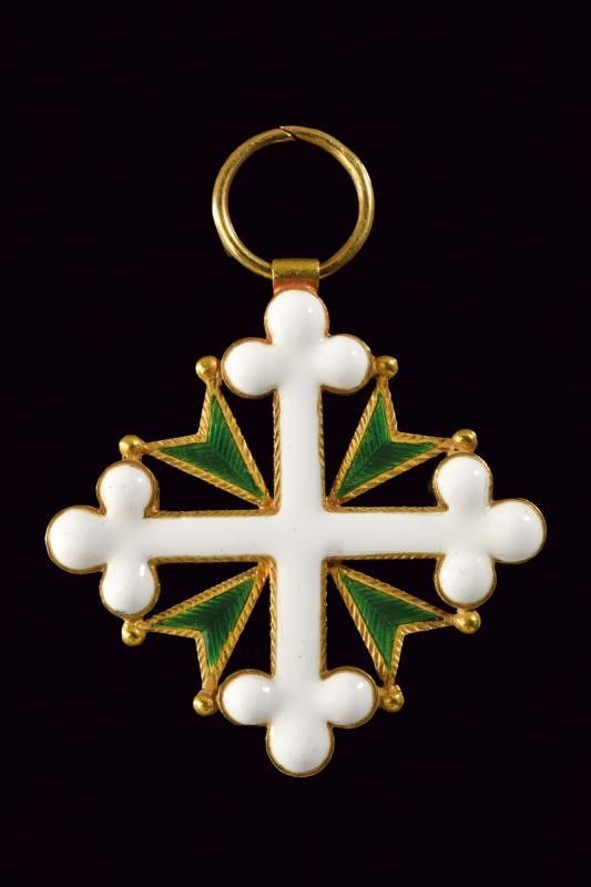 1820 circa Croce da cavaliere in oro e smalti. L'anello con punzone. Di buona fattura.