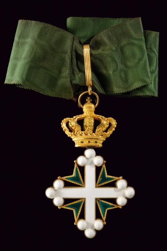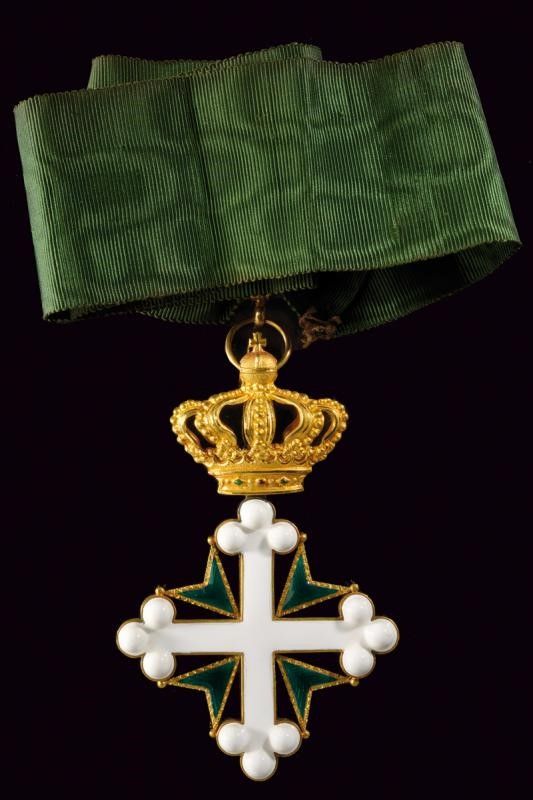 Metà del XIX Secolo Croce di commendatore in oro con smalti. Su nastro da collo antico. Bellissima fattura.