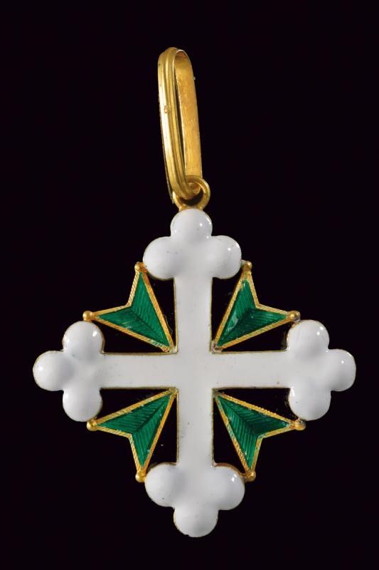 1855 circa Croce da commendatore. In oro e smalti, punzone a testa d'aquila sull'anello. Con lungo passante per il nastro da collo. Epoca della Guerra di Crimea.