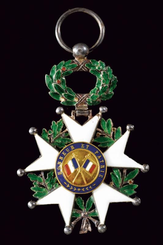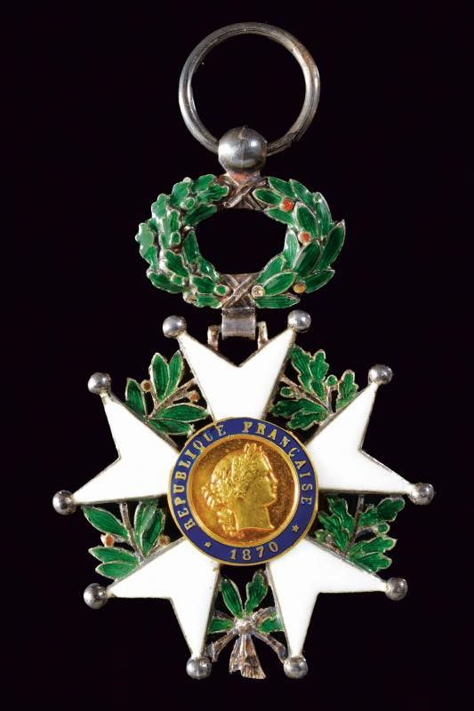 Prima metà del XX Secolo Settimo modello. Croce da ufficiale, in argento e smalti, il medaglione in oro (piccolo chip sul lato posteriore). Punzonato.