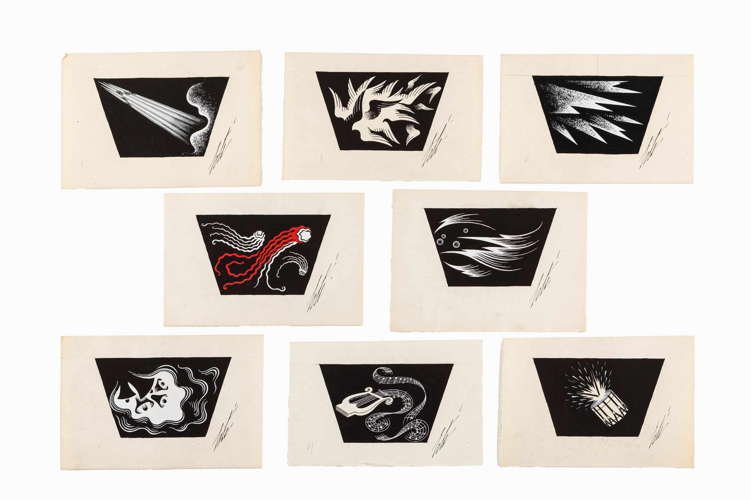 anni 30 Lotto composto da 8 disegni originali realizzati da Erté negli anni '30. Recanti al retro il timbro dell'artista e il numero d'archivio 3190. Firmati.