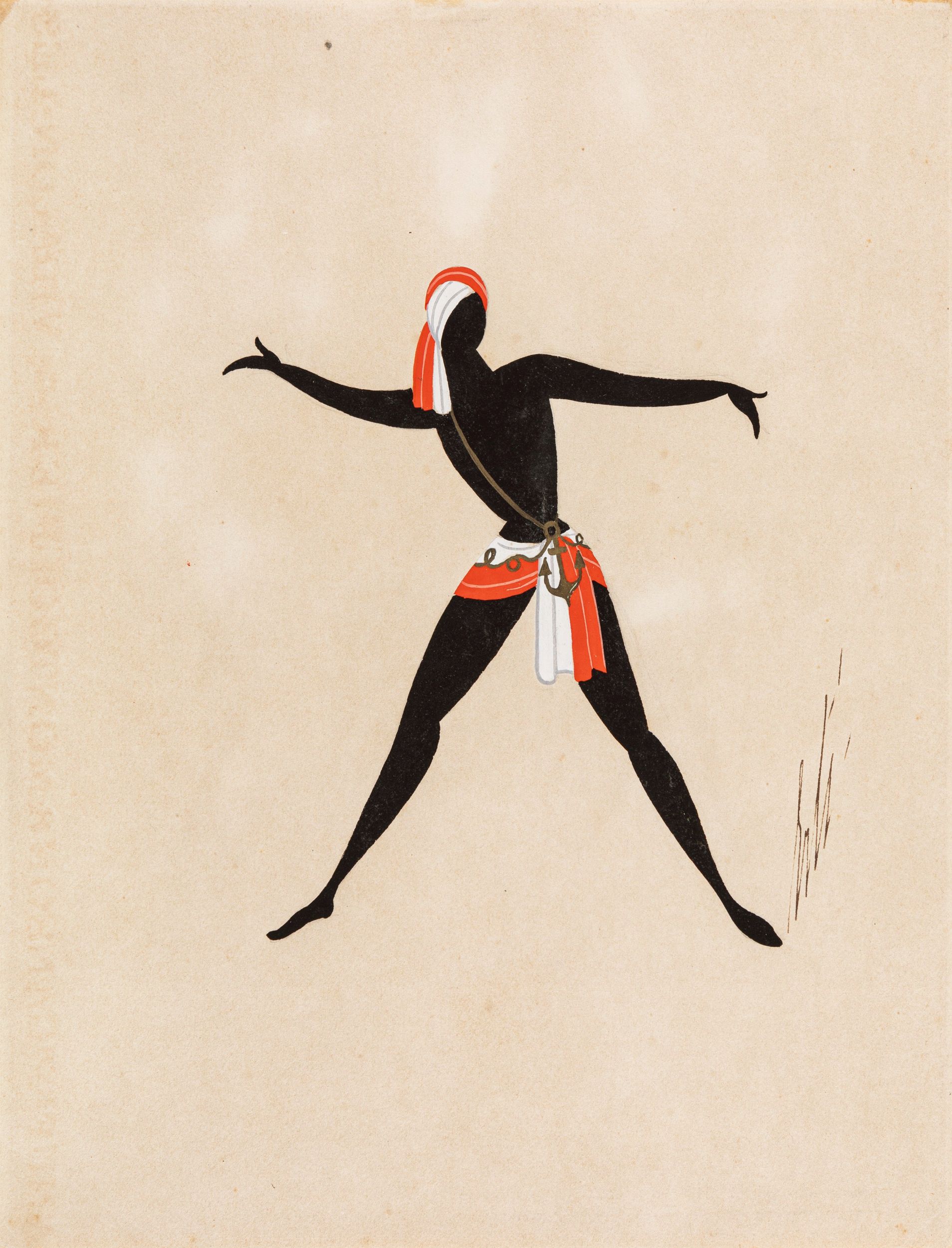 anni 40 Disegno originale realizzato da Erté negli anni '40 per i costumi di una rappresentazione teatrale. Recante al retro il titolo, il timbro dell'artista e il numero d'archivio 7069. Firmato.