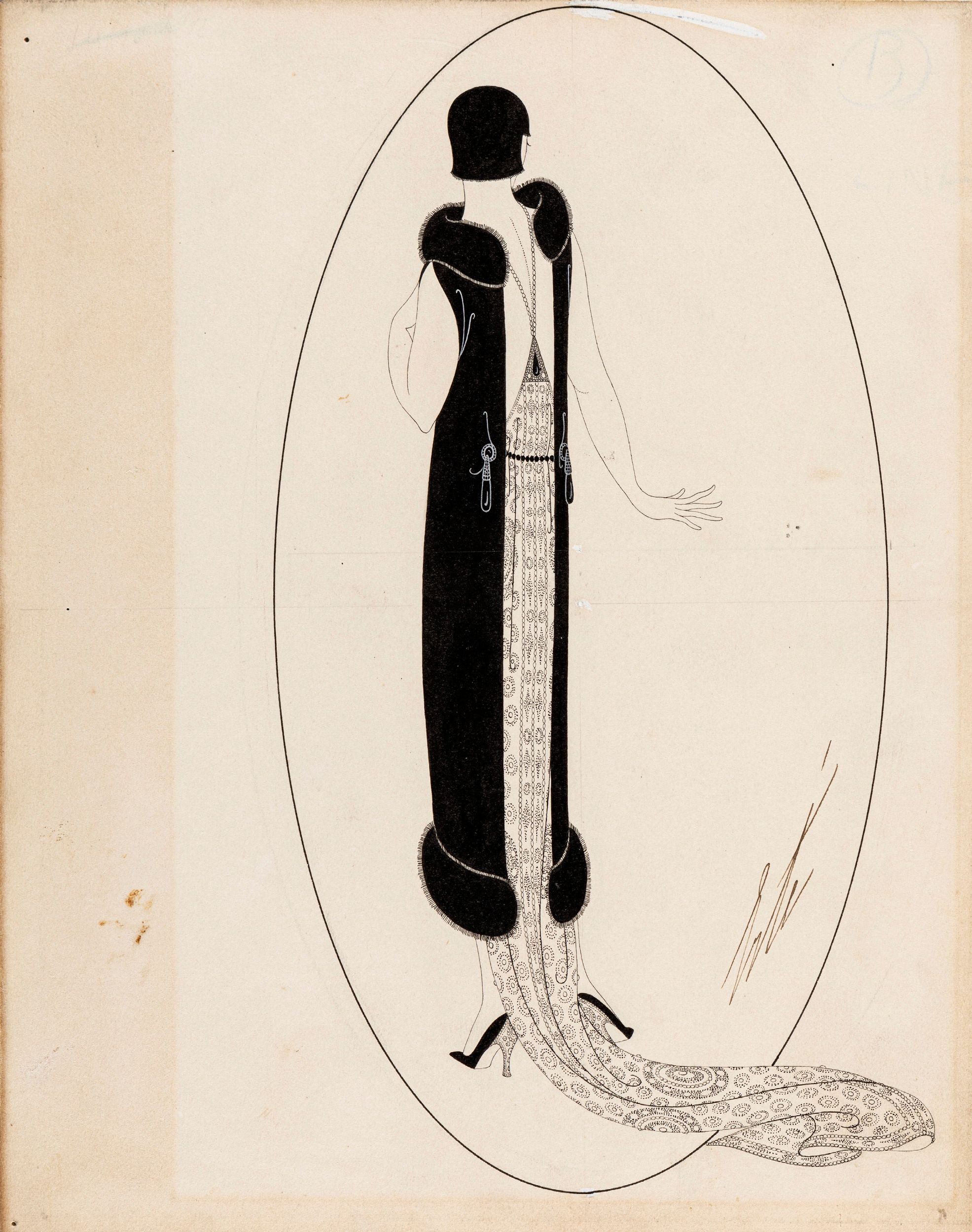 1924 Disegno originale realizzato da Erté nel 1924 per la celebre rivista Ladies' Home Journal. Opera pubblicata nel volume 'Erté: Cose che ricordo' edito da Edizioni La Bautta nel 1987. Recante al retro il timbro dell'artista e il numero d'archivio 936. Fori di affissione agli angoli. Firmato.