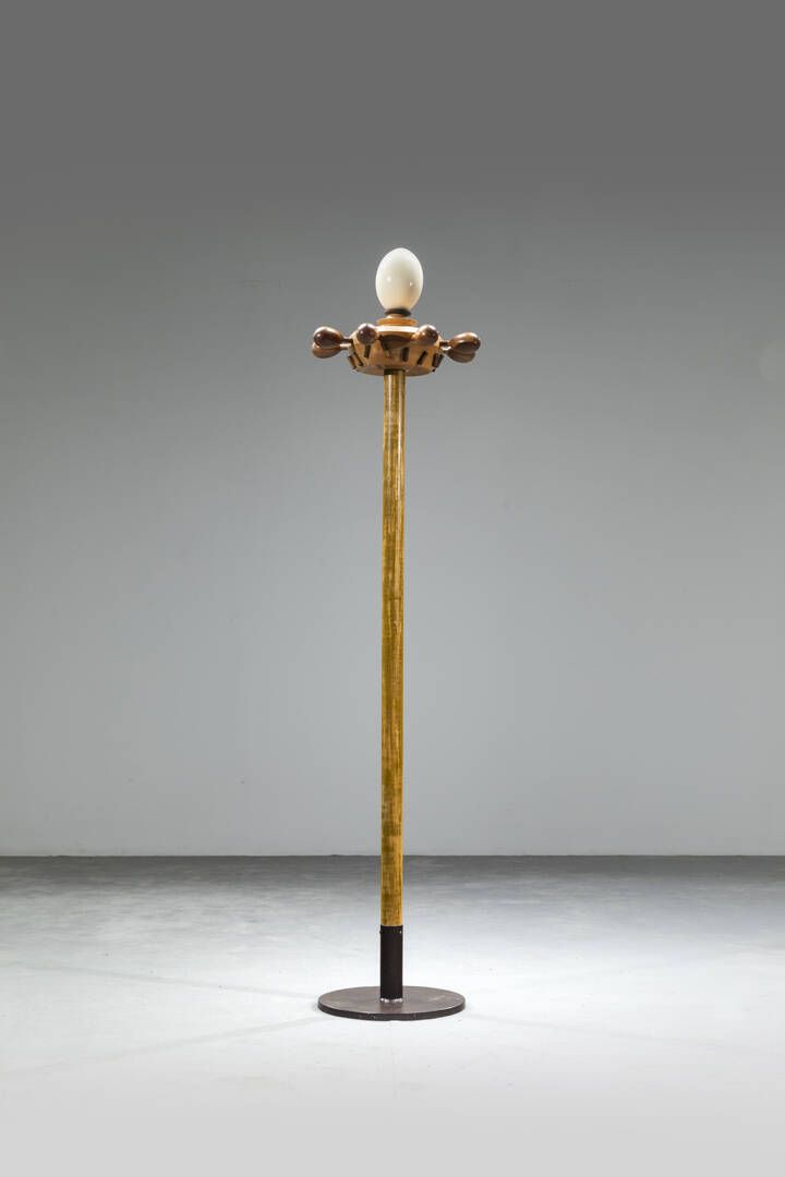 Struttura in legno uovo di struzzo trattato. Base in ghisa verniciata Fine anni '90 cm 205x50 Filatura