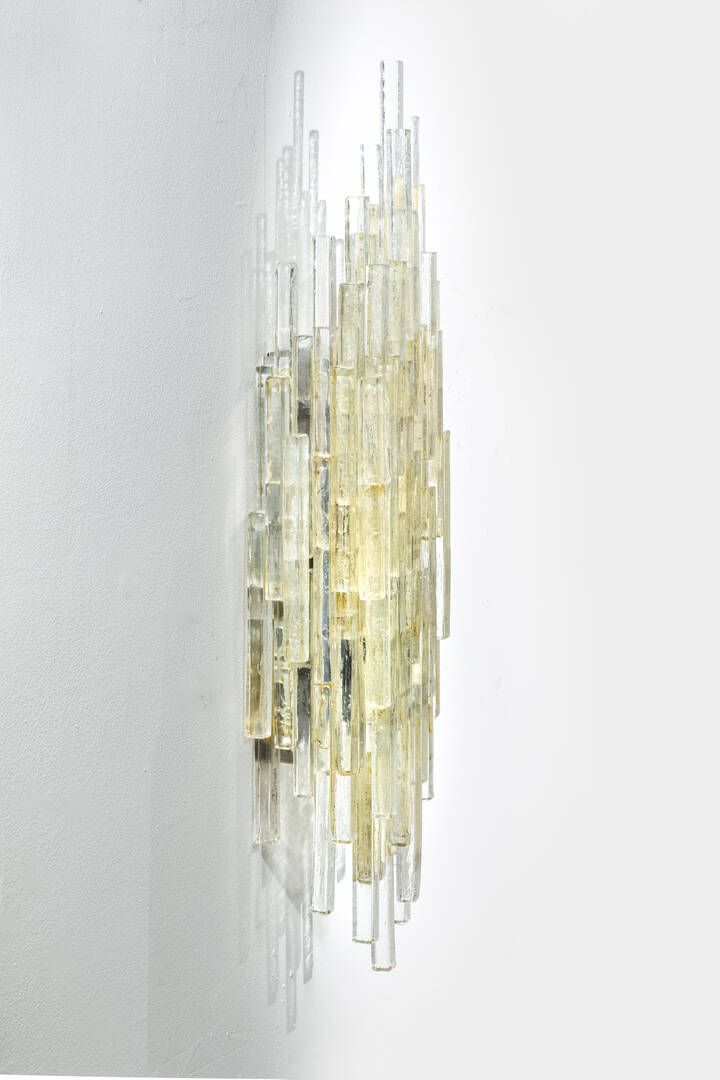 Struttura in alluminio e diffusore in vetro ad effetti di colori differenti. Anni '70 h cm 93x28