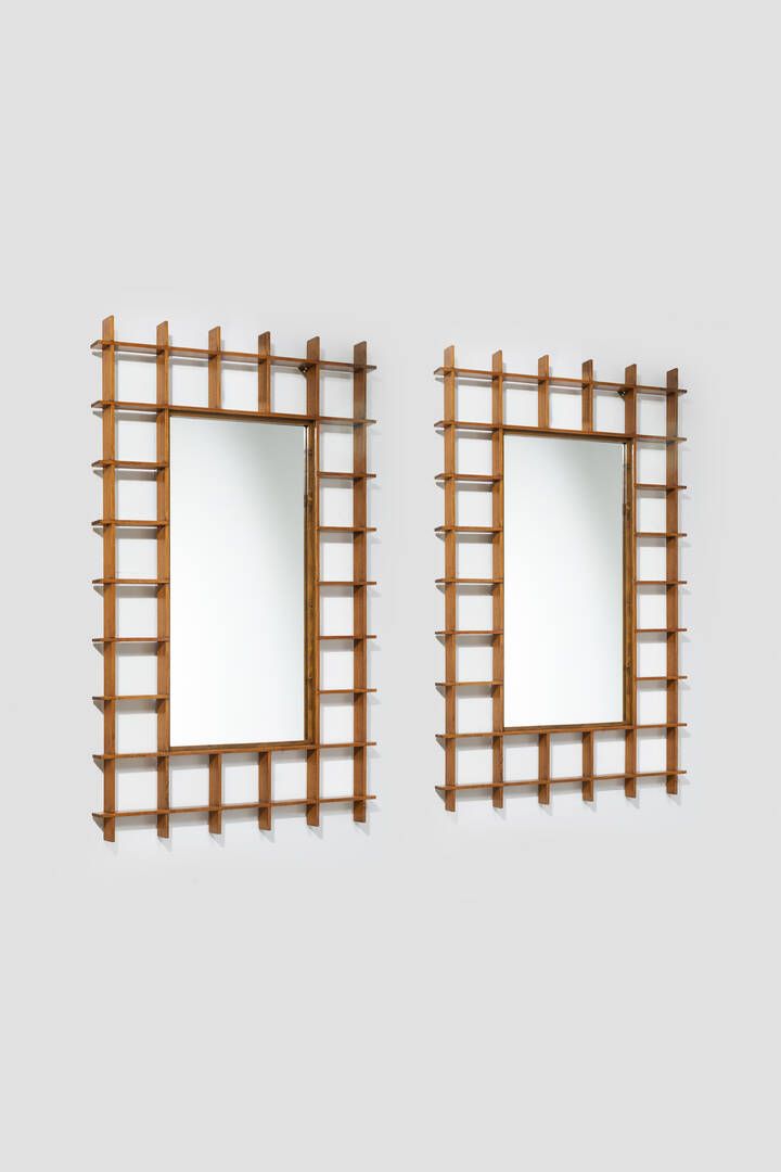Struttura in legno e vetro specchiato. Anni '70 cm 105x65