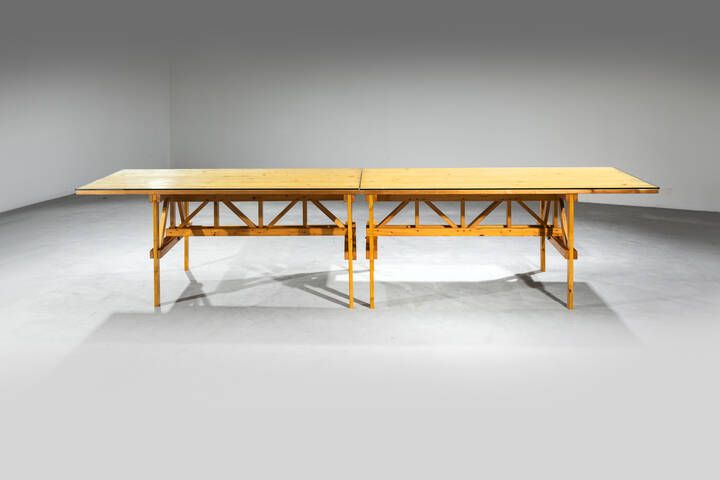 Strutta in legno piani in legno e vetro. Prod. Simon Metamobile 1974 singolo modulo cm 73x181x78 Bibl.: Catalogo Simon Gavina