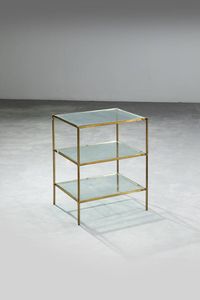 Struttura in legno piano in vetro specchiato e particolari in ottone. Anni '70 cm 34x50x67 Piccoli difetti