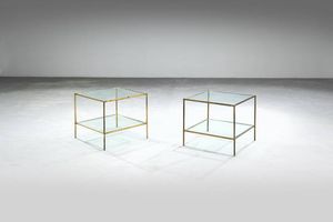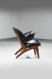 Struttura in legno imbottitura rivestita in pelle. Anni '70 cm 75x105x105 cm 40x60x70 Bibl.: Rivista dell'arredamento [..]