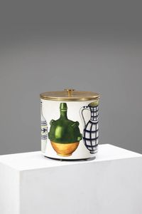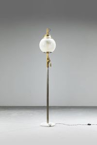 Struttura in legno metallo e poliuretano espanso. Sostegni in ottone e rivestimento in skai. Etichetta del produttore [..]