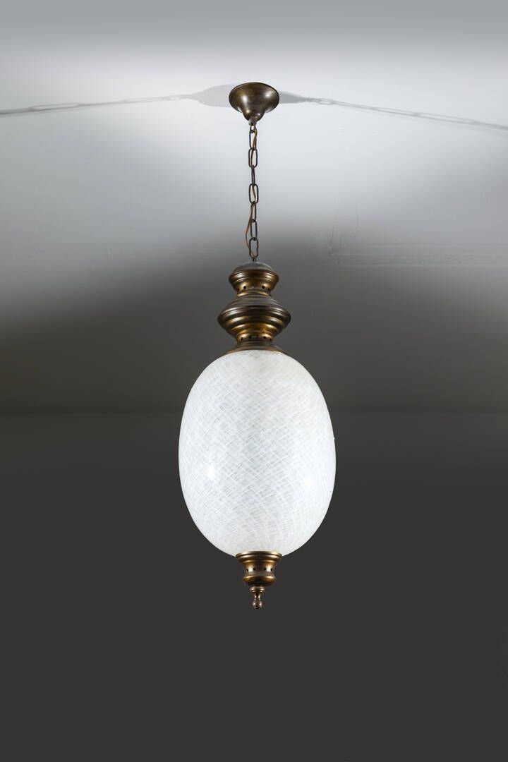Struttura in ottone diffusore in vetro. Anni '60 h cm 90x25
