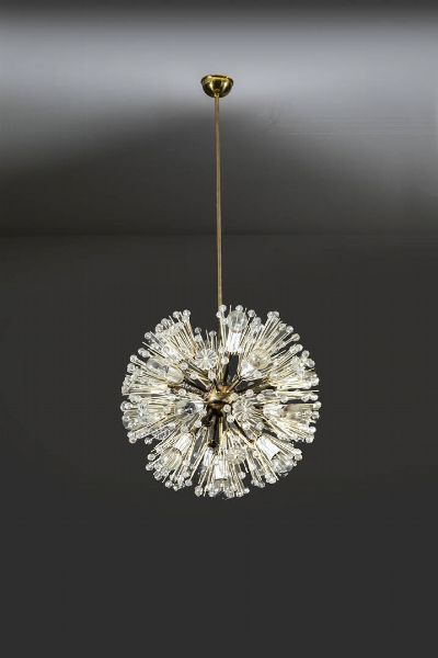 Struttura in ottone ed elementi plastici trasparenti. Prod. Repert Nikoll anni '50 h cm 100x45
