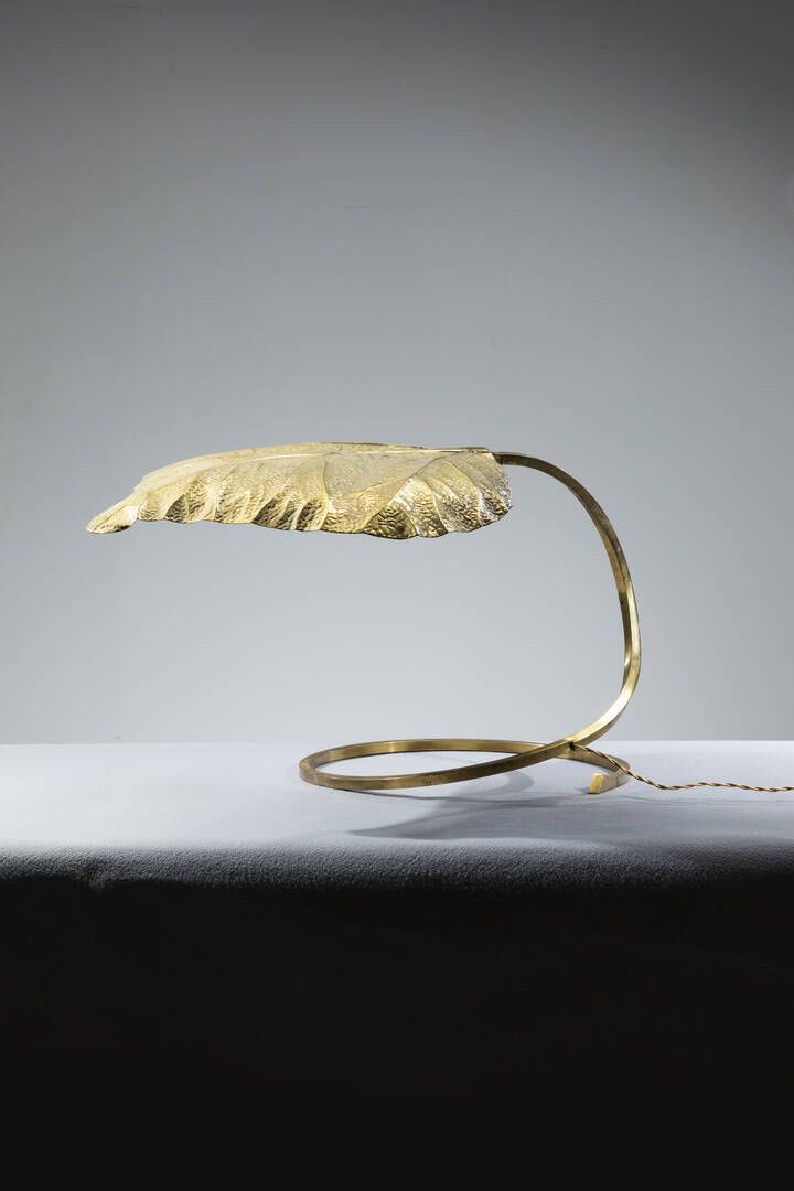 Struttura in ottone con tre grandi foglie ciascuna con una singola luce. Anni '70 cm 43x83