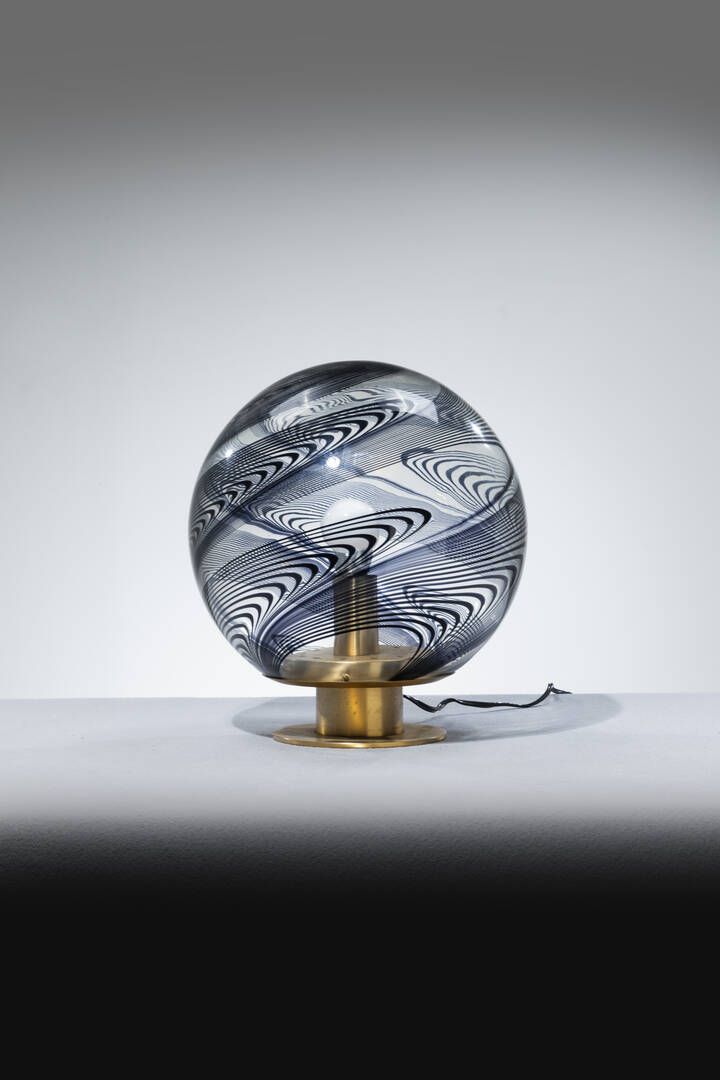 Struttura in ottone vetro trasparente con decoro a spirali in vetro colorato. Prod. La Murrina anni '70 h cm 39x35